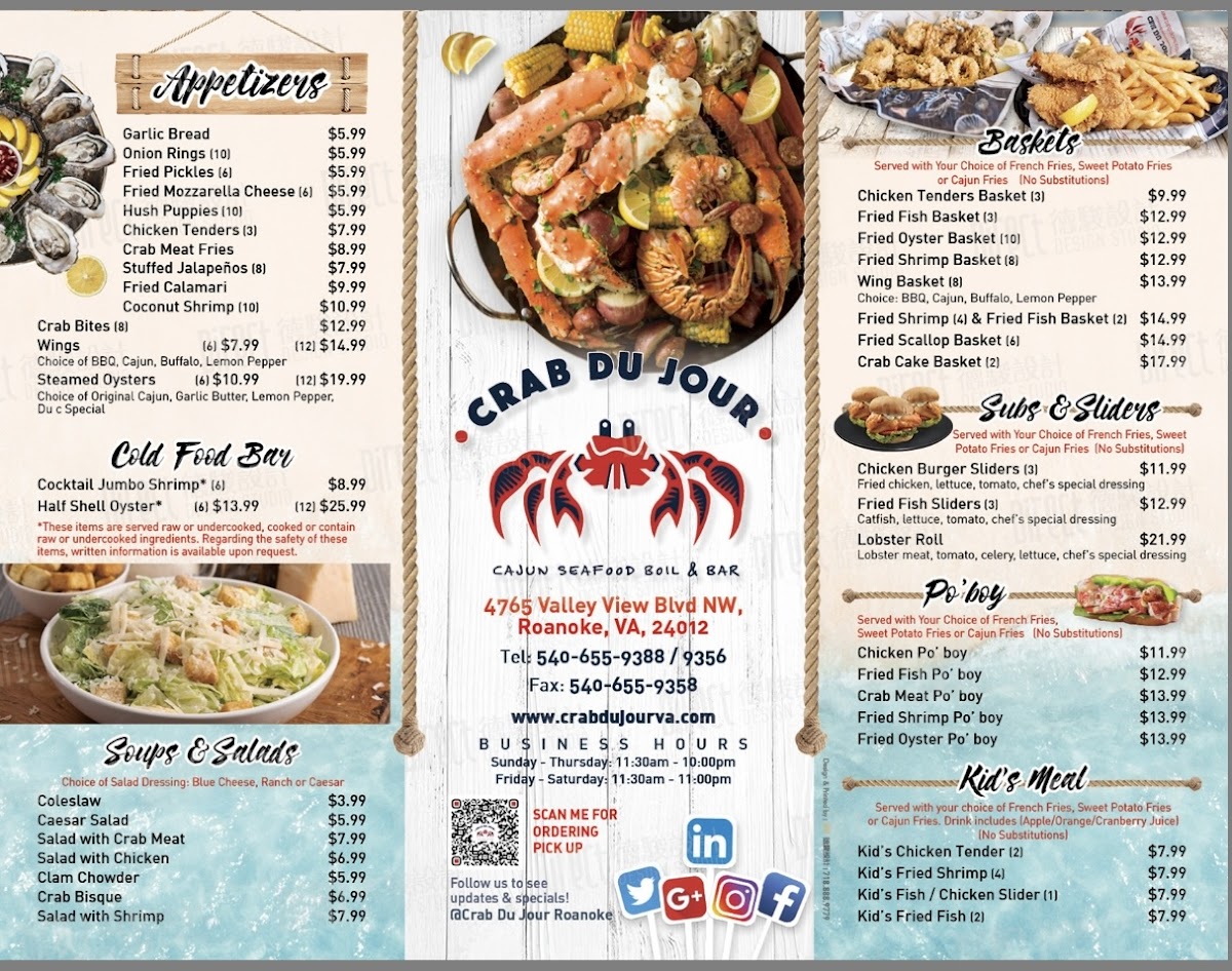Crab Du Jour Cajun Seafood & Bar Menu (2025 Update)